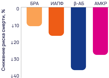 снижает риск смерти или госпитализации по причине