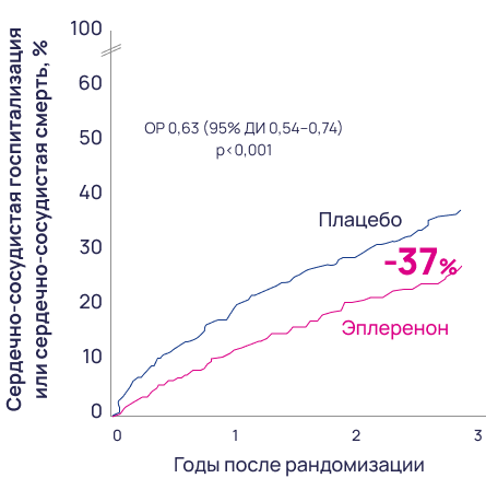 Применение эплеренона у таких пациентов в течение 21 месяца снижает2: